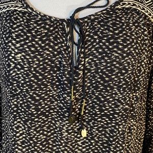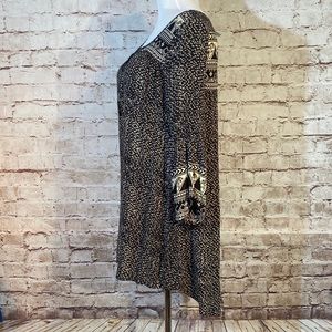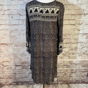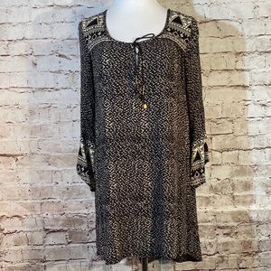 Billabong dress, Black and Tan, Aztec Western vibe print, ties at the neck, long sleeve with a slit at the cuff. Very cute, would look great with your favorite western boots, Sandals or Keds.