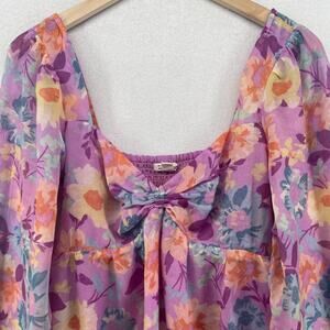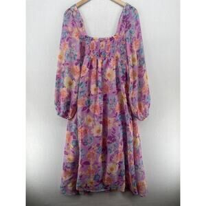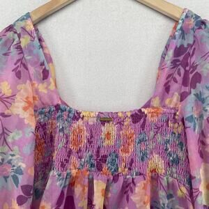 BILLABONG SALTY BLONDE Dress L Paradise Love Floral Smocked Balloon Sleeve Pink
