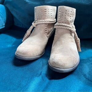 BILLABONG FAUX SUEDE LASERCUT TASSELS ANKLE BOOTIE SIZE 7.5 EUC