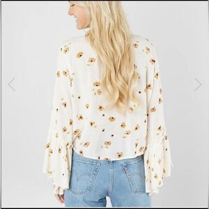 BILLABONG "Lust Wild Top" Tie-Up Crop Top w/Bell Sleeves size M