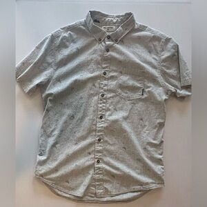 BILLABONG Men’s Button Down Short Sleeve Collared Grey Shirt Large Palm Trees