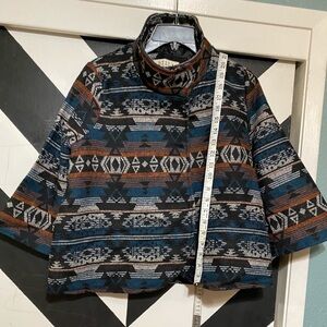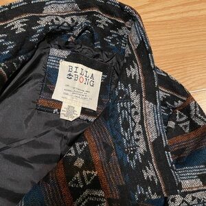 BILLABONG Multi-Color Geometric Aztec Wool Blend 3/4 Sleeve Pockets Snap Blazer Jacket Size S