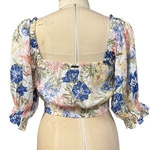 BILLABONG | Royal Wear Top Crop Top Swiss Dot Puff Sleeve Floral in Multi M