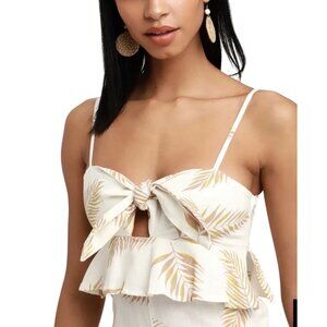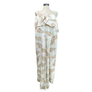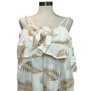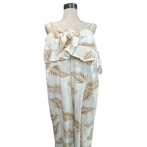BILLABONG SINCERELY JULES Twist Flirt Jumpsuit L Wide Leg Tan White Linen Cotton
