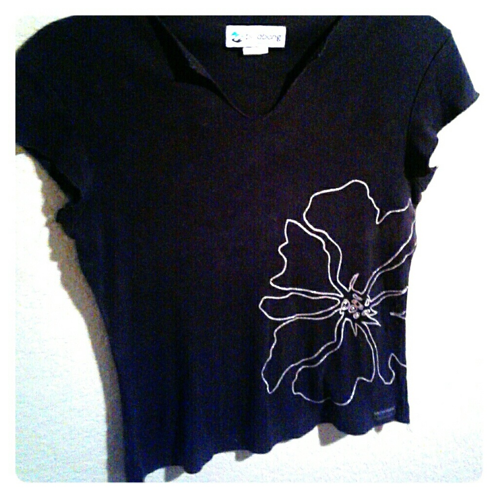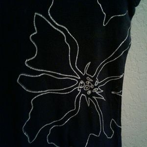 ✓Black base, with large flower on side outlined in white shimmer