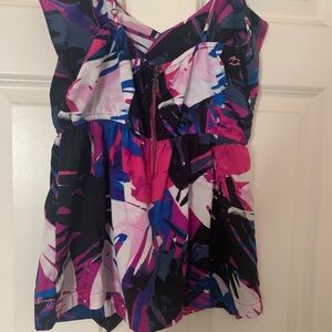 Tropical spaghetti strap from Billabong. Gently worn a few times. Cute zipper in the back. Has a ruffled look and machine washable. 100 Polyester. Smoke free home, no holes or stains.