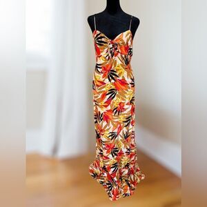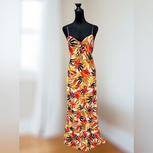 Billabong Sweet Kiss Maxi Dress Tropical Print Tie Front Thigh Slit