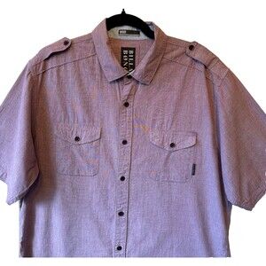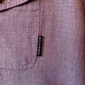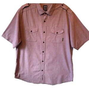 BILLABONG Shirt Men's XL Short Sleeve 100% Cotton Red White Blue Casual Pockets