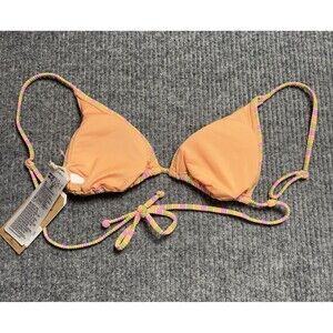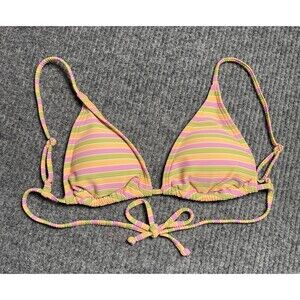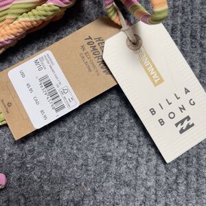 BILLABONG Size MEDIUM Hightide Tanlines Slide Tri Multi-Color Stripe Bikini Top String Padded NEW.