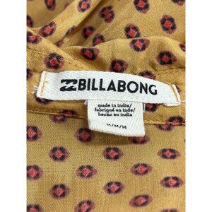 BILLABONG Sunset Sessions Crop Top Sz M Gold Red Polka Dot Button Up Tie Front
