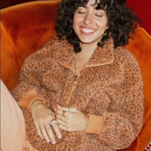 Cheetah print fleece quarter zip pullover