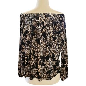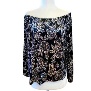 BILLABONG Women's Black/White Off Shoulder Velvet Top Sz Small