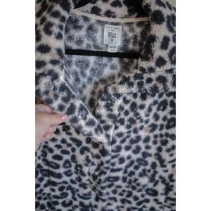 BILLABONG Womens Cozy Days Sherpa Fleece Jacket Leopard Snap Closure SZ S in Beautiful Pre-Owned Condition. This Coat runs oversized, could fit a M.