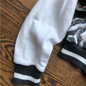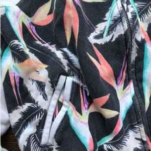 BILLABONG Tropical Print, Stripe-Sleeved Zip-Up Bomber Jacket (Size Junior Large)