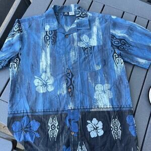 BILLABONG button down cotton, short sleeve, shirt, blue men's size L