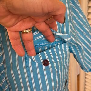 Billabong Blue and white stripes blouse, short sleeves, size M, measurements on the pictures,