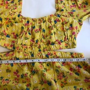 Bright yellow dress with colorful floral design. Ideal for warm weather.