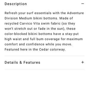 BILLABONG WOMEN’S A/DIV MEDIUM CEDAR SIZE SMALL UPF 50 BIKINI BOTTOMS NWT