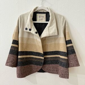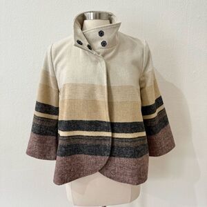BILLABONG Wool Blend Swing Coat Funnel Neck Boxy Striped Southwestern MEDIUM