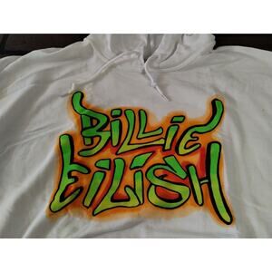 BILLIE EILISH - 2020 White Graffiti Sleeve Pullover Hoodie ~BRAND NEW~ M XL