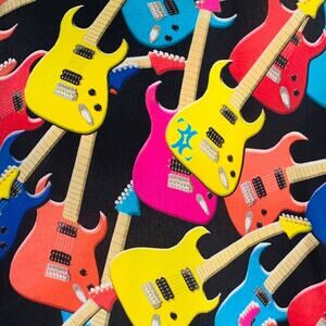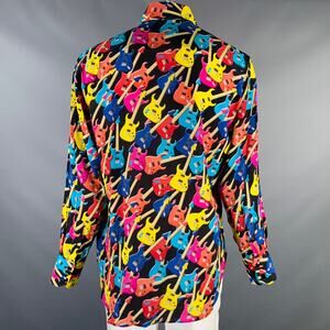BILLIONAIRE COUTURE Size XL Black Multi Color Guitars Silk Long Sleeve Shirt