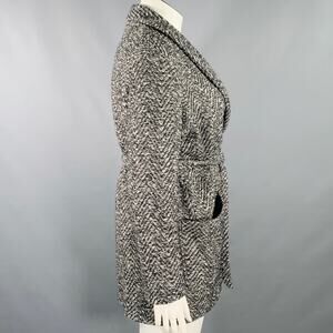 BILLY REID Size L Grey Black Wool Cotton Herringbone Belted Jacket