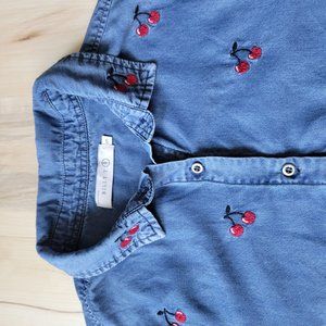 BILLY T Size Small Button Down Denim Shirt Cherry Pattern Blue Red Lyocell