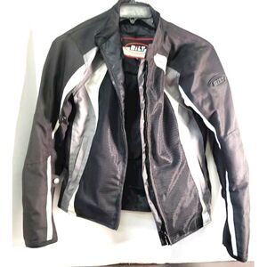 BILT BLW5 Motorcycle Jacket Padded Womens SM Gray Black Shoulder And Elbow Armor. Elastic sides and Mesh lining. Vent on upper arms, shoulders and upper back.