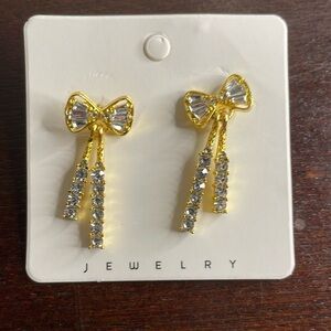 *BIN* Goldtone Zircon Crystal Post Bow Earrings