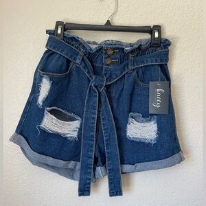 BIN#11 - DENIM BLVD High Waisted Paper Bag Shorts