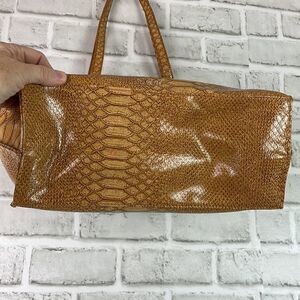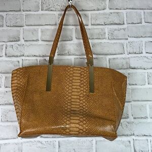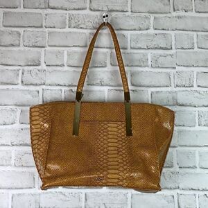 EUC Lime New! Bini Faux Leather Snake Print Tote in Golden Mustard Color Large Size