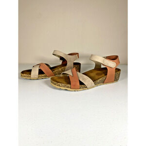 BIO-GOLD Genuine Leather Sandals Made In Italy Brick/Taupe Woman Size 8 EUC