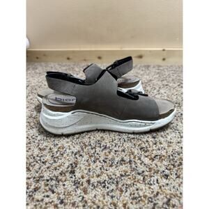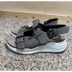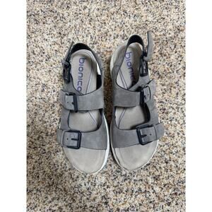BIONICA Olin Leather Buckle Platform Sandal Shoes Olive Brown Size 8