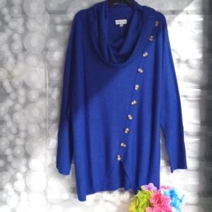 BIRCH NY ROYAL BLUE LONG SLEEVE COWL NECK SWEATER SIZE LARGE NWT