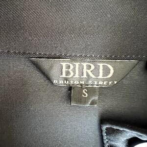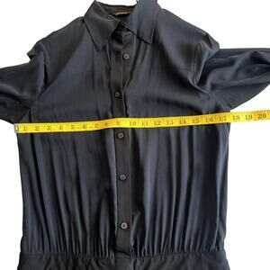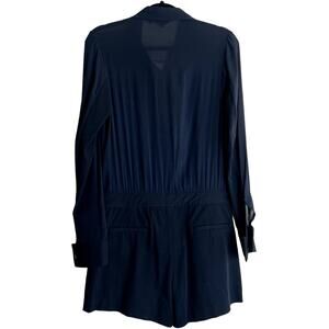 BIRD Bruton Street Romper Woman Size Small MODAL SILK BLEND Sheer Designer Luxury Minimalist Classic LBD Revenge Elegant Party Event Holiday Stunning Statement Long Sleeve Button Front upper Black Pockets