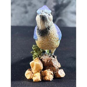 BIRD Figurine Blue Jay on Log Resin Home Decor Resin 3 inch