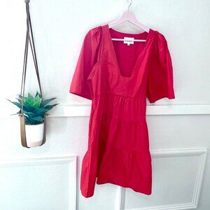 BIRD & KNOLL Gigi Puff-Sleeve Tiered Poplin Mini Dress Red Size S
