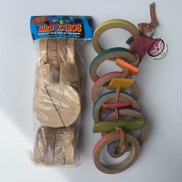 This listing is for 2 pc lot, new in packaging, for medium to large pet birds and great for shreding & chewing. Fantasic toys for your parrot, maccaw, etc. Colors in photos may vary some due to camera settings and lighting.
