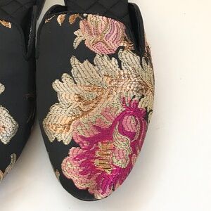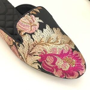 BIRDIES Phoebe Embroidered Floral Jacquard Slipper Mules Flats in Black Size 8