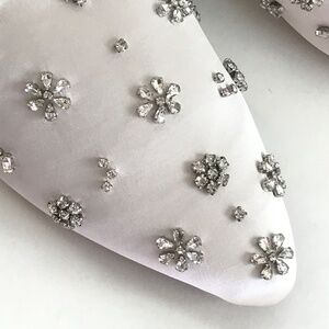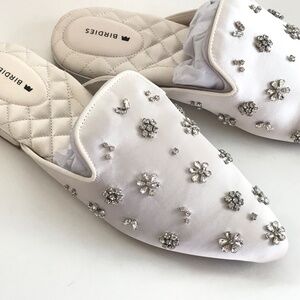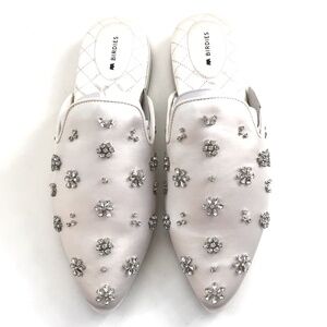 BIRDIES The Dove Satin Mule with Crystal Embellishments Lily White Size 8.5