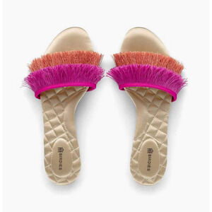 BIRDIES The Sparrow Women's Size 6.5 Pink Fringed Slip-On Comfort Slide Sandals