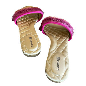 BIRDIES The Sparrow Women's Size 6.5 Pink Double Fringe Slip-On Flats Slide Sandals Slippers. Cushioned Footbed. Beautiful for the Holidays. Excellent Condition. (Originally $95.) Ships within 24 hours.
