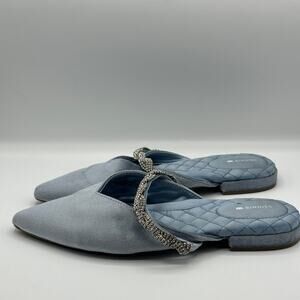 BIRDIES The Swan Velvet Crystal Mule Flats Slides Bluebell Dusty Blue Sz 8