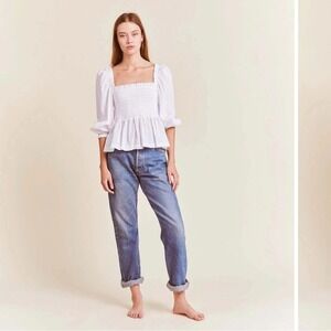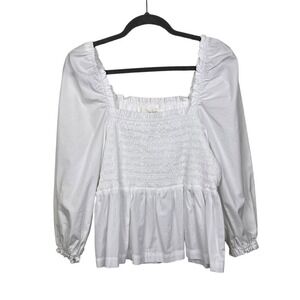 BIRDS OF PARADIS BY TROVATA ALIZE PEASANT BLOUSE SIZE L CLASSIC WHITE NWT