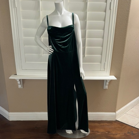 From Birdy Grey; A modern bridesmaid dress with a slinky cowl neck, plus a modest slit.