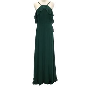 BIRDY GREY M Green Ruffle Halter Jules Formal Bridesmaid Maxi Dress NWT B141