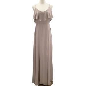 BIRDY GREY SZ L Taupe Jane flutter sleeveless bridesmaid maxi dress NWT B101