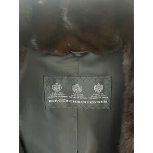 BIRGER CHRISTENSEN, Purveyor to his/her majesty Denmark,Sweden Greece Worlds finest Dark Ranch Mink, Great Lakes Mink Association Size 12 Mid-length 36" Features: Swing Coat, 3 inner hook/clasp closures, 2 outer pockets, inner slip pocket, fully lined, lightly padded shoulders. Excellent Condition, Minimal Signs of gentle wear