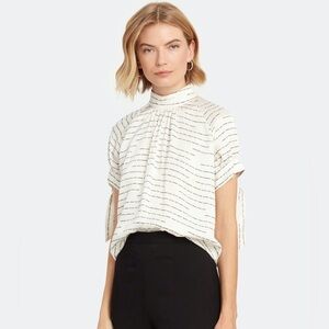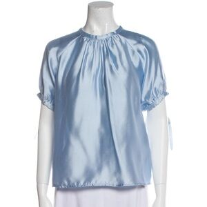 BIRGITTE HERSKIND / Puff Sleeve silk tie sleeve Blouse Blue 32 XS