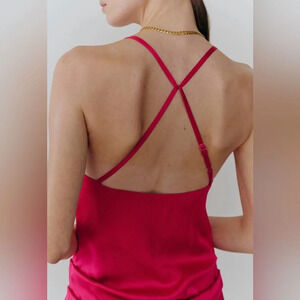 NWOT BIRGITTE HERSKIND SATIN ORLY MINI DRESS WITH CRISSCROSSED STRAPS AND BARE BACK